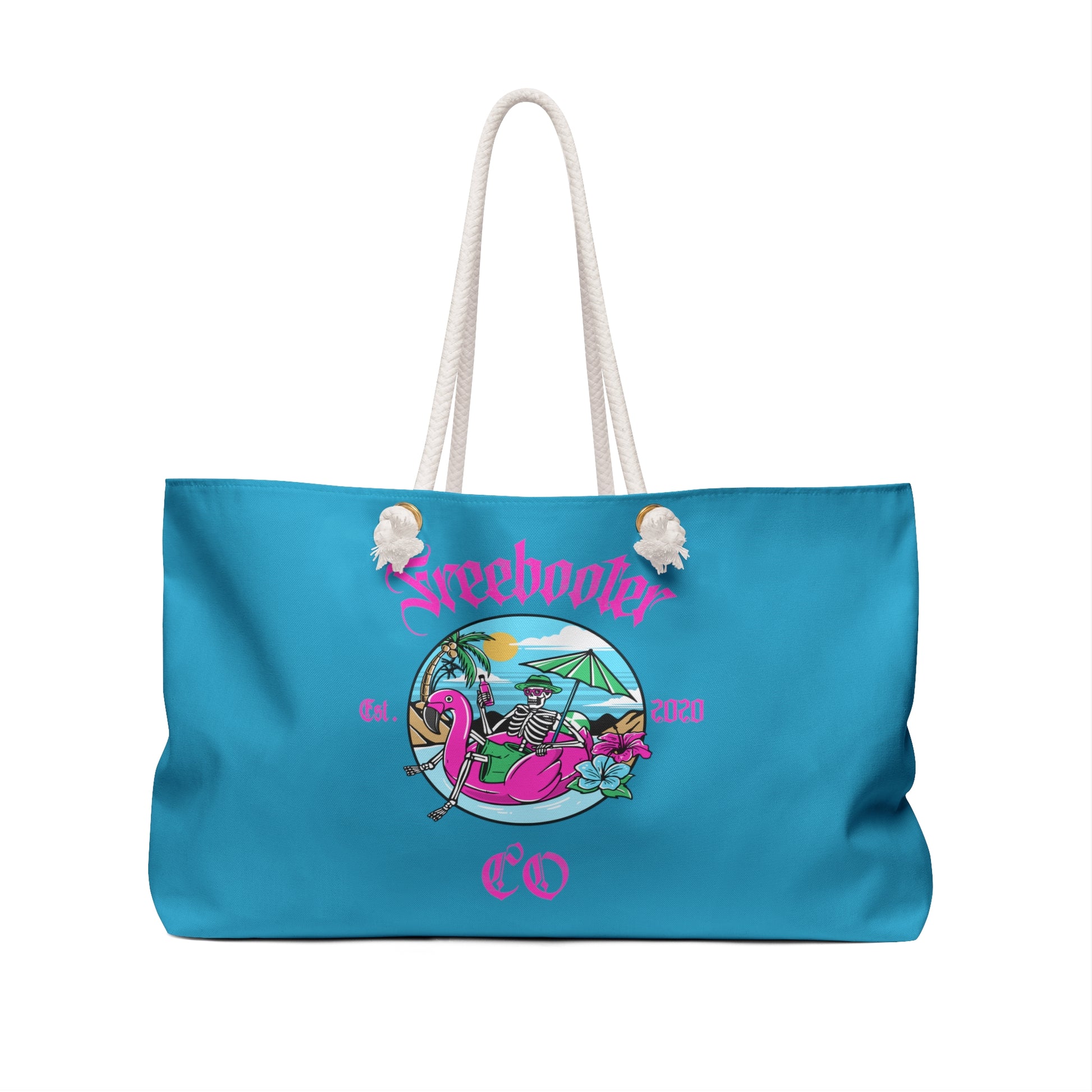 Our oversized Weekender Tote is perfect for your weekend at the beach or in town. The wide-mouthed, durable bag holds a generous amount of personal items and is easily held by its thick rope handles.